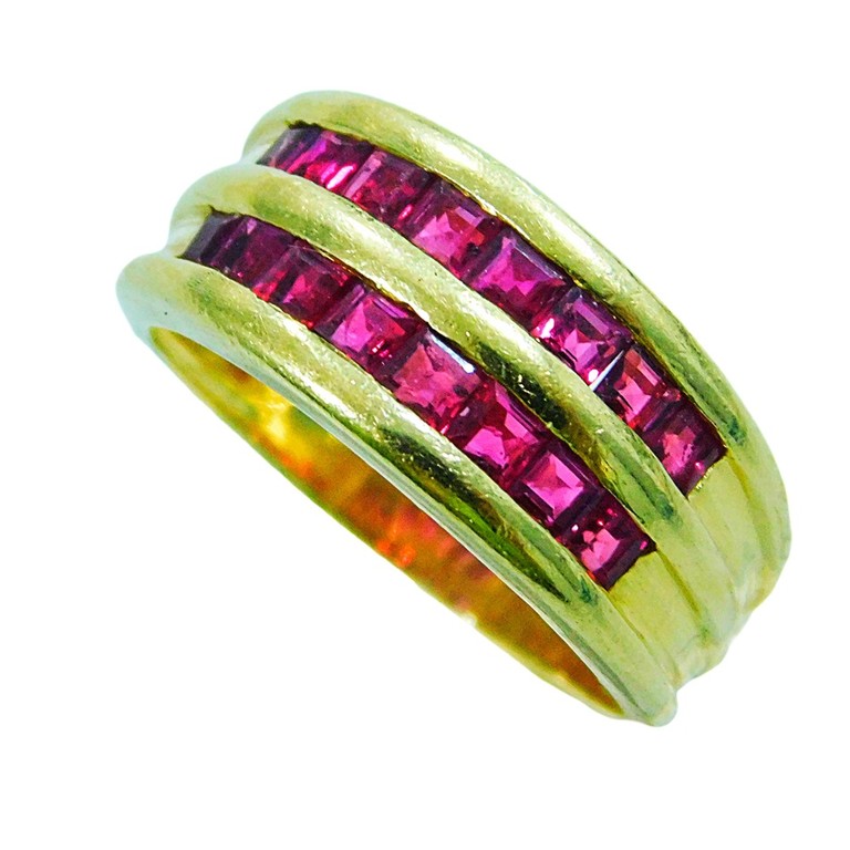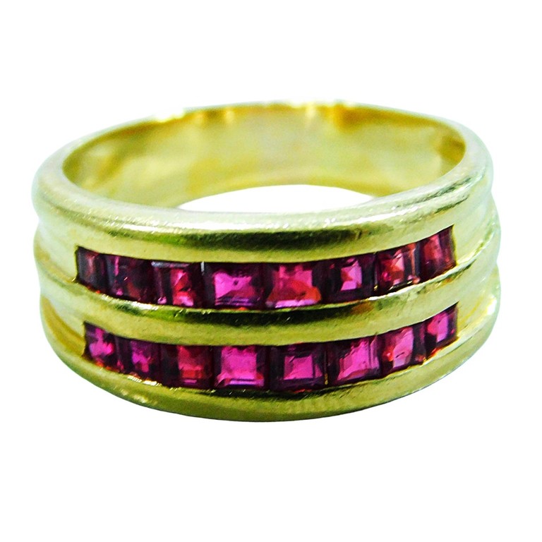 ANILLO 2 RISTRAS CIRCONITAS ROJAS T:18 6.15GR 18K