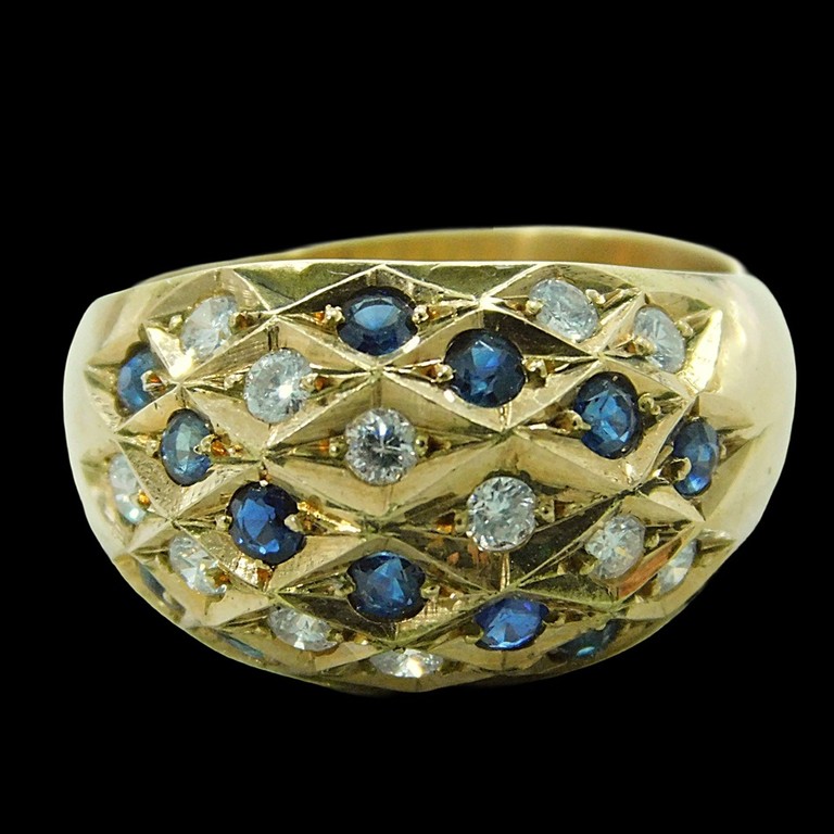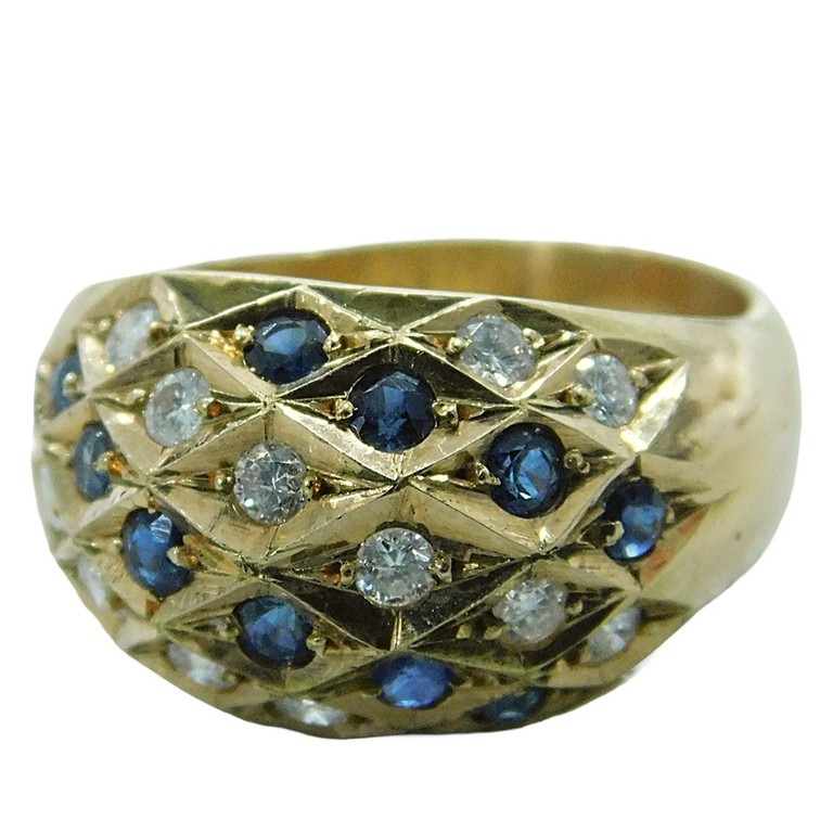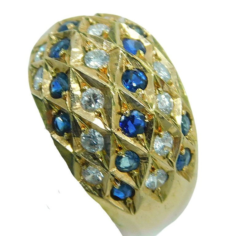 ANILLO ABOMBADO MOISSANITE Y ZAFIROS T:15 7.26GR 18KPiedras: CIRCONITAS BLANCAS Y AZULES