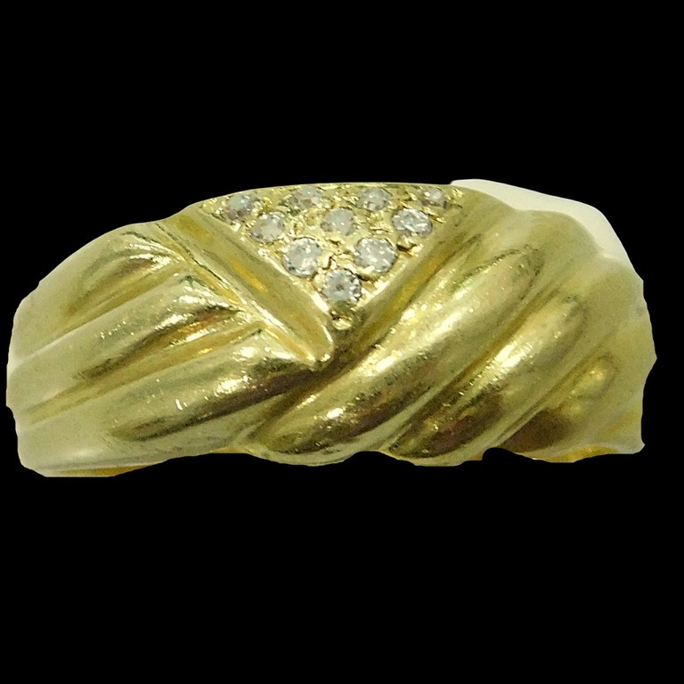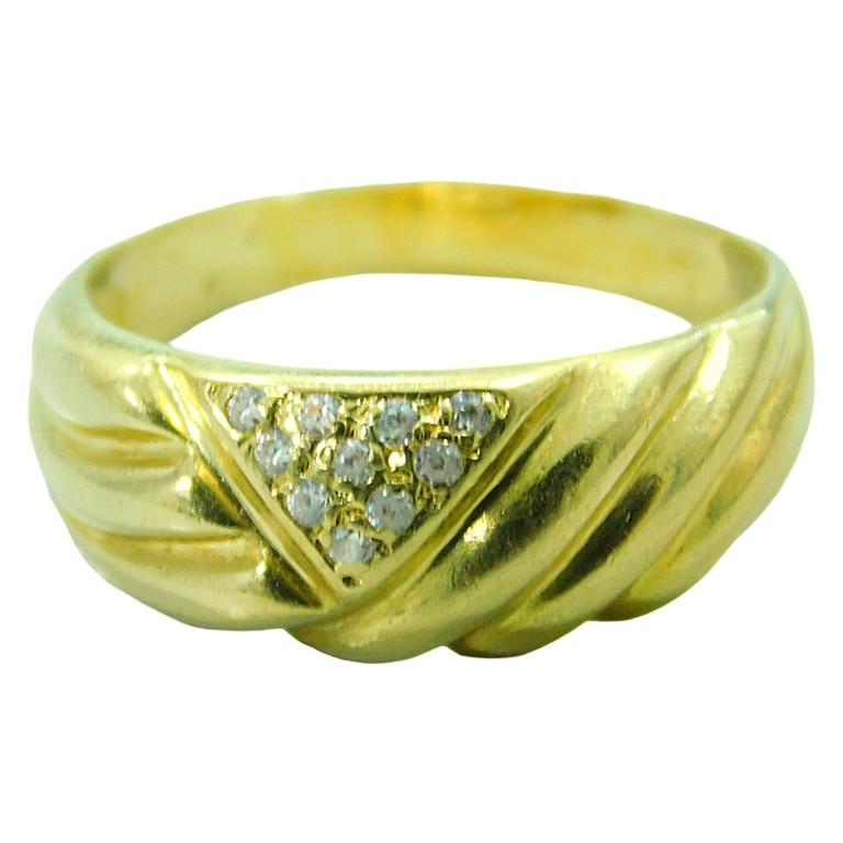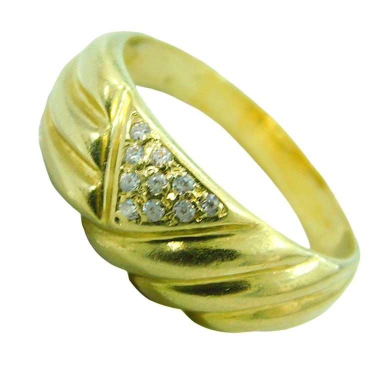 ANILLO ANCHO ONDAS APLIQUE TRIANGULAR CIRCONITAS T:18 4.69GR 18K