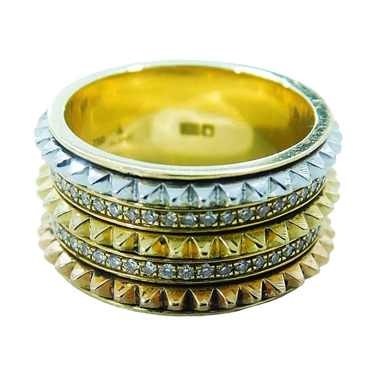 ANILLO ANCHO TRIPLE TRICOLOR T:14 11.46GR 18K