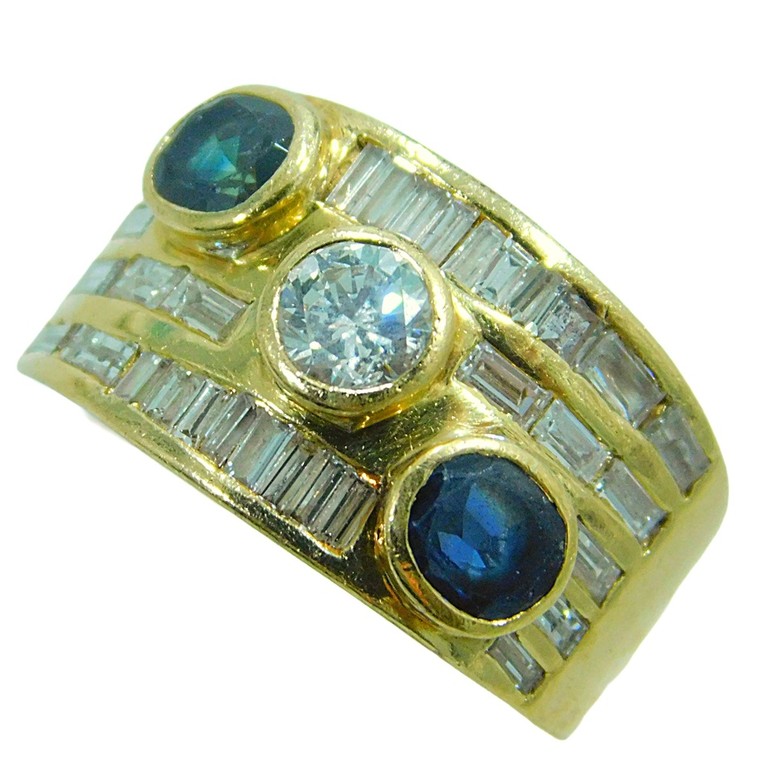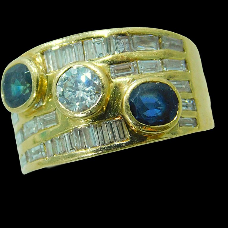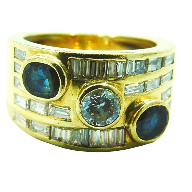 ANILLO ANCHO ZAFIROS Y MOISSANITE T:11 10.09GR 18KPiedras: CIRCONITAS BLANCAS Y AZULES