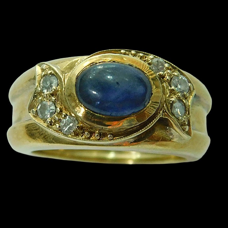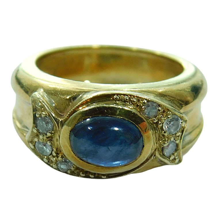 ANILLO APLIQUE PIEDRA AZUL Y MINI CIRCONITAS T:10 9.35GR 18K