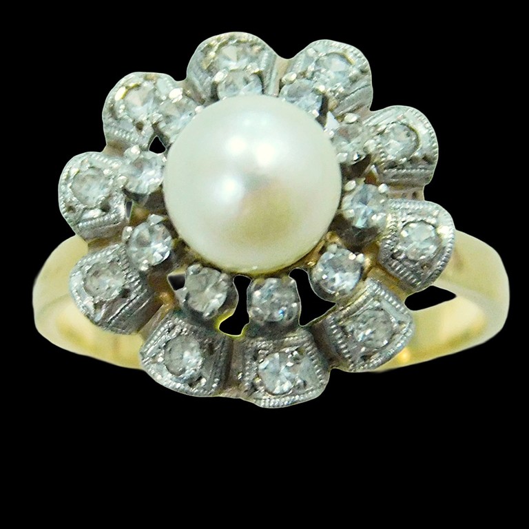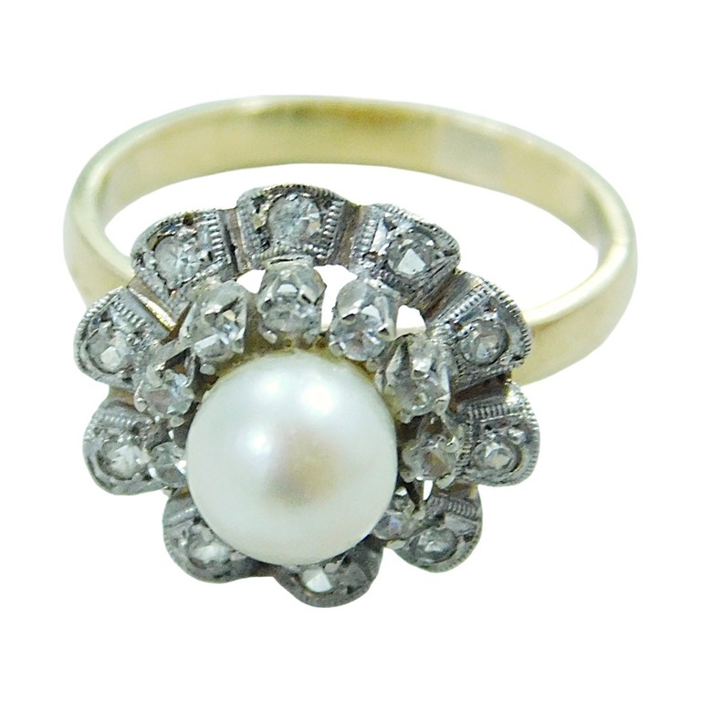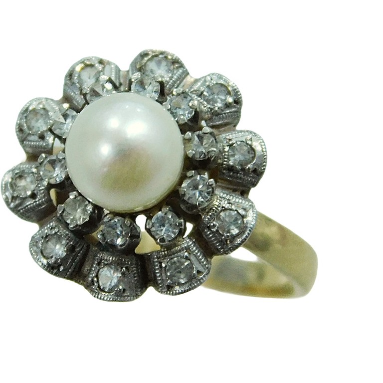 ANILLO BICOLOR VINTAGE PERLA T:14 4.28GR 18K