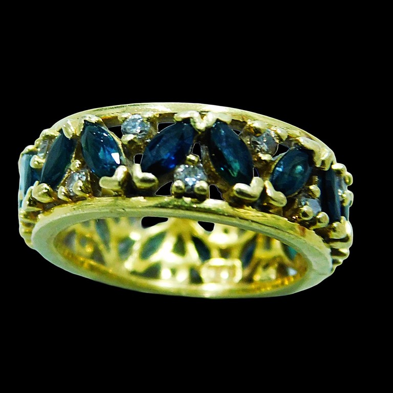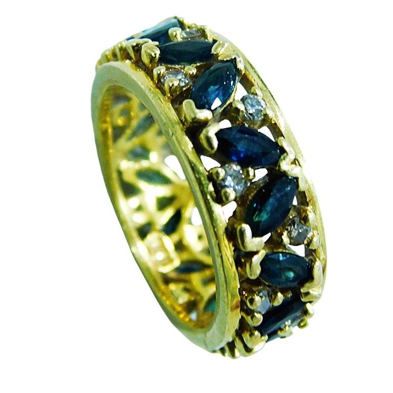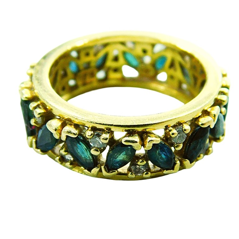 ANILLO CARRIL CALADO CIRCONITAS AZULES Y BLANCAS T:13 8.19GR 18K