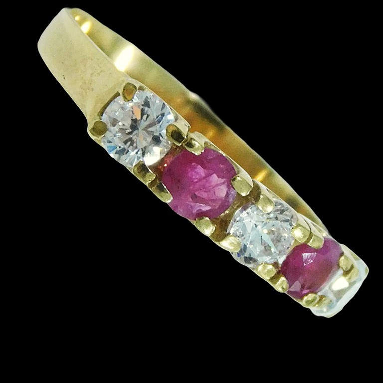 ANILLO CINQUILLO CIRCONITAS BLANCAS Y ROJAS T:20 2.78GRPiedras: PIEDRAS BLANCAS Y ROJAS
