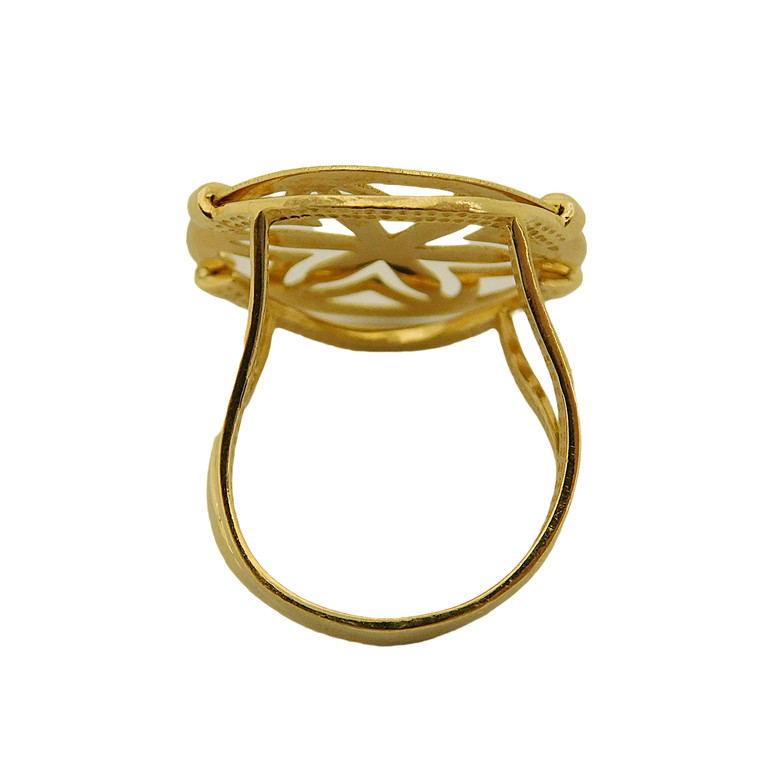 ANILLO CON MONTURA REDONDA DISEÑO FLOR TALLA 13, 5.20GR. 18K
