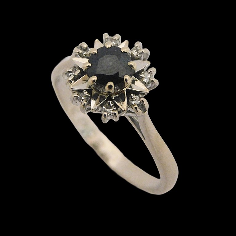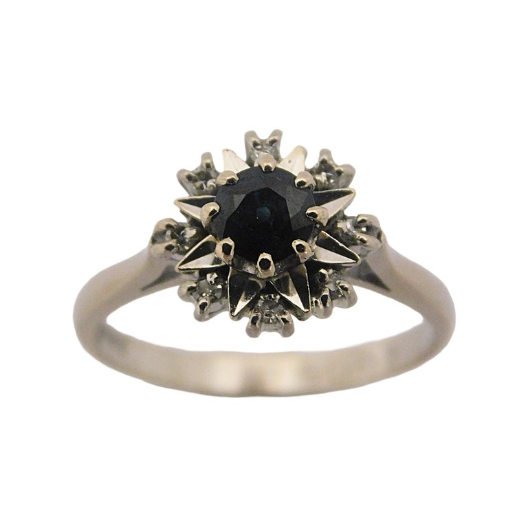 ANILLO ORO BLANCO MONTURA REDONDA CON ZAFIRO Y MOISSANITAS TALLA 14, 4.10GR. 18KPiedras: PIEDRA AZUL Y CIRCONITAS