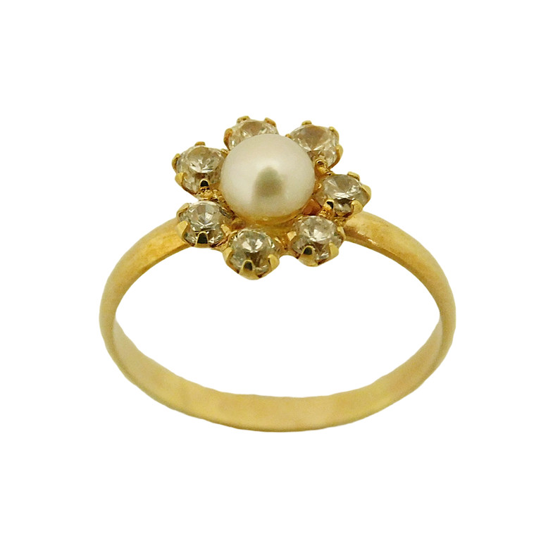 ANILLO FLOR CON PERLA Y CIRCONITAS TALLA 11, 1.70GR. 18KPiedras: PERLA Y CIRCONITAS