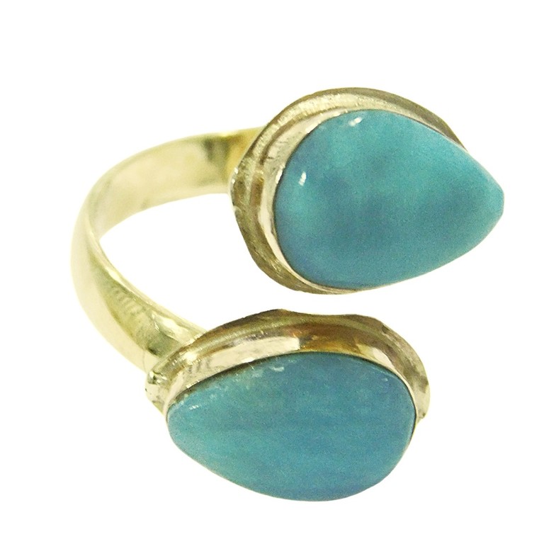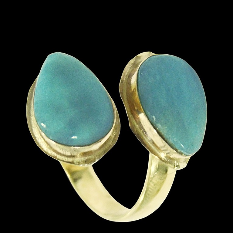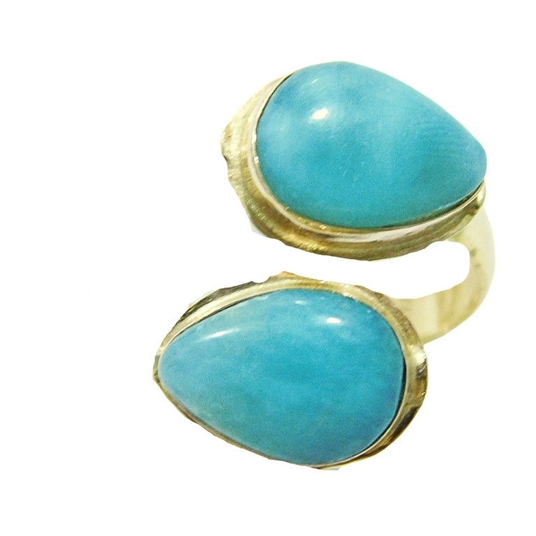 ANILLO DOBLE PIEDRA LARIMAR T:17 4.94GR 18K
