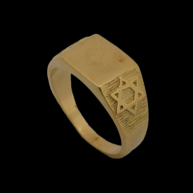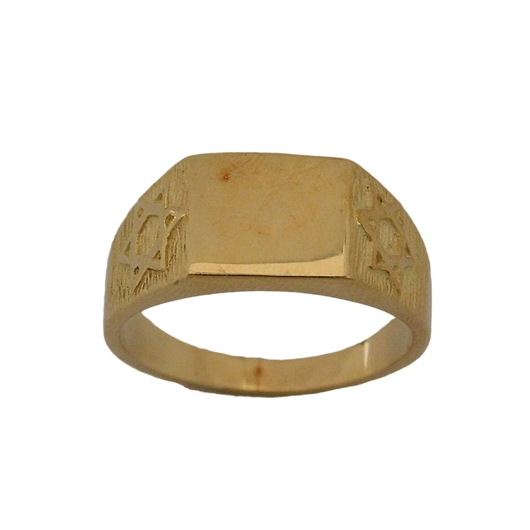 ANILLO TIPO SELLO TALLADO CON ESTRELLA DE DAVID A CADA LADO TALLA 18, 6.10GR. 18K