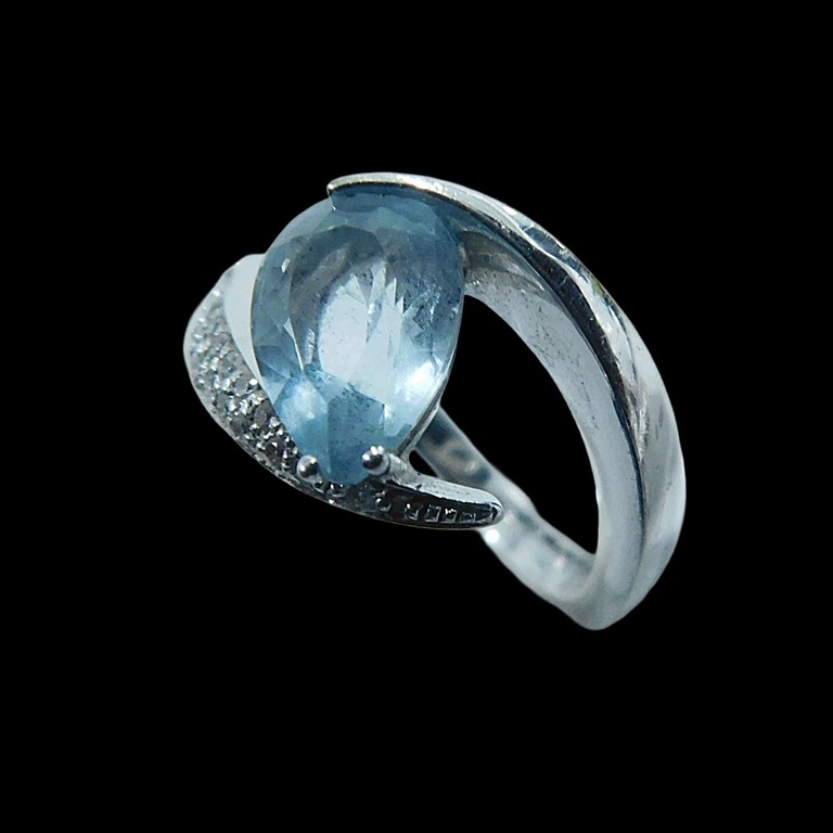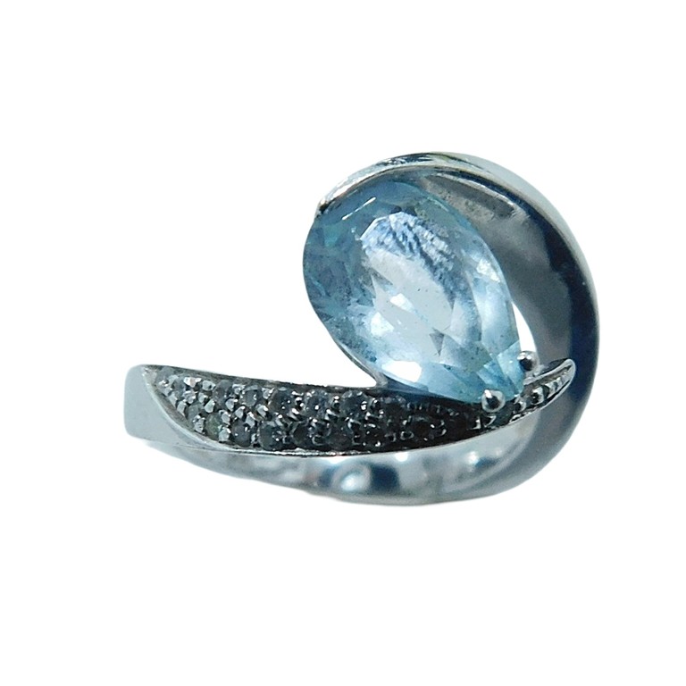 ANILLO ORO BLANCO CON CIRCONITAS Y APATITA TALLA 15, 6.87GR. 18K