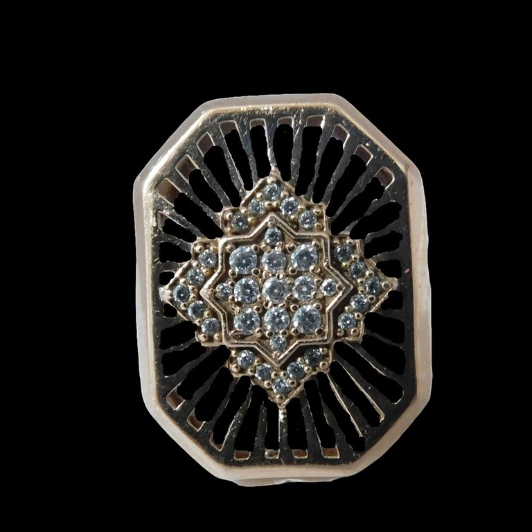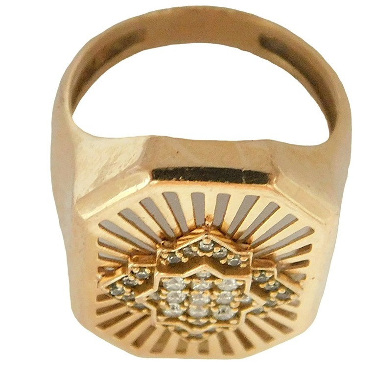 ANILLO ORO ROSA RECTANGULAR CALADO APLIQUE CIRCONITAS T:16 6.94GR 18K