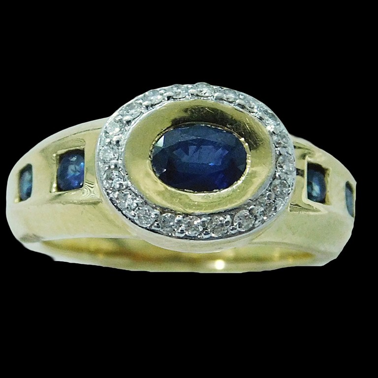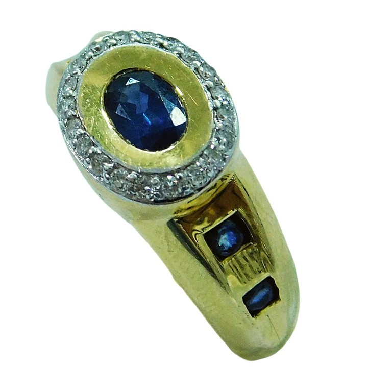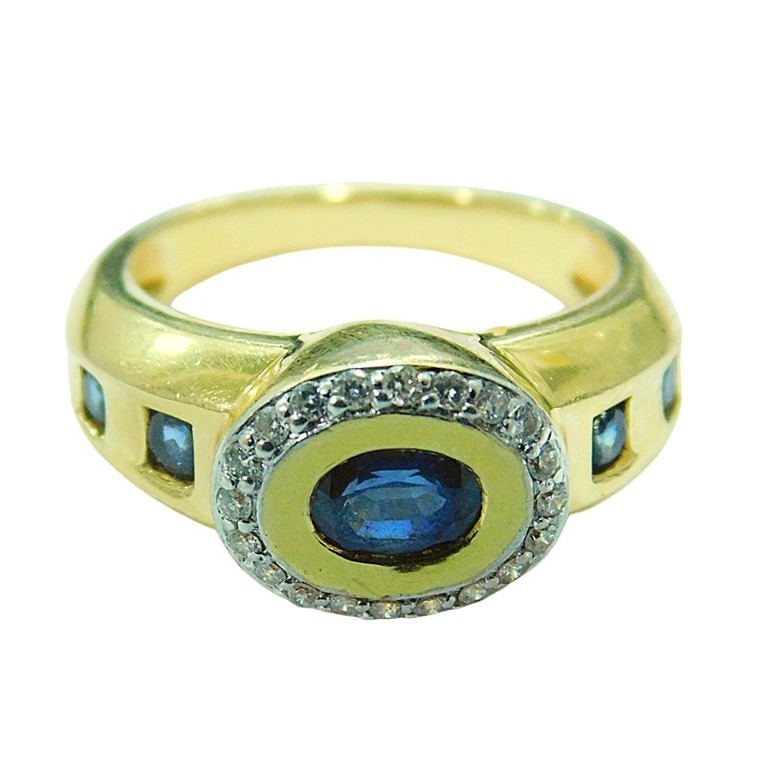 ANILLO PIEDRA AZULES Y MINI MOISSANITAS BLANCAS T:14 7.59GR 18K