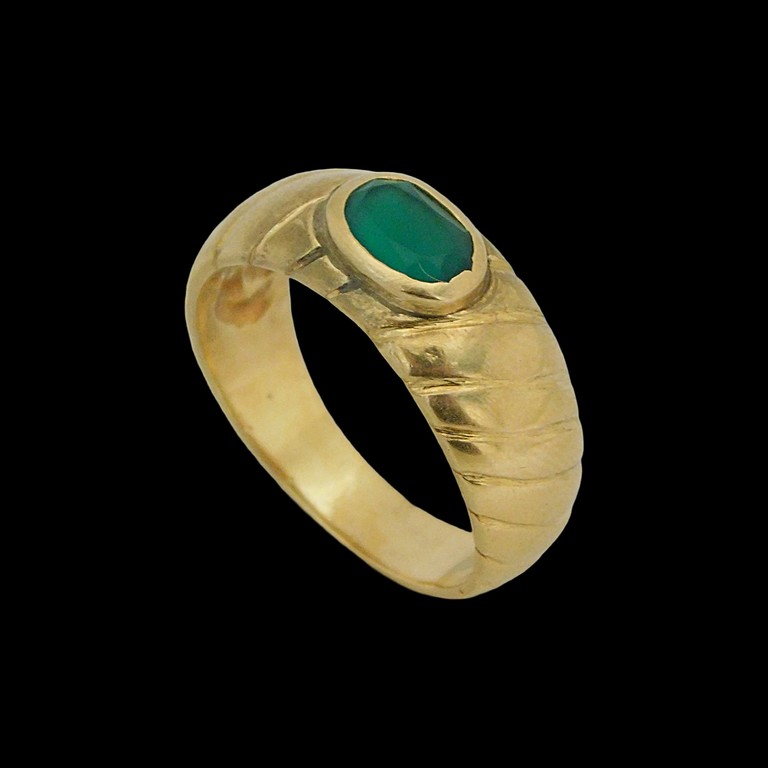ANILLLO SOLITARIO TALLADO CON TURMALINA VERDE TALLA 15, 5.60GR. 18KPiedras: PIEDRA VERDE
