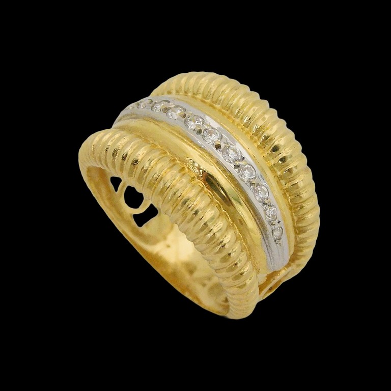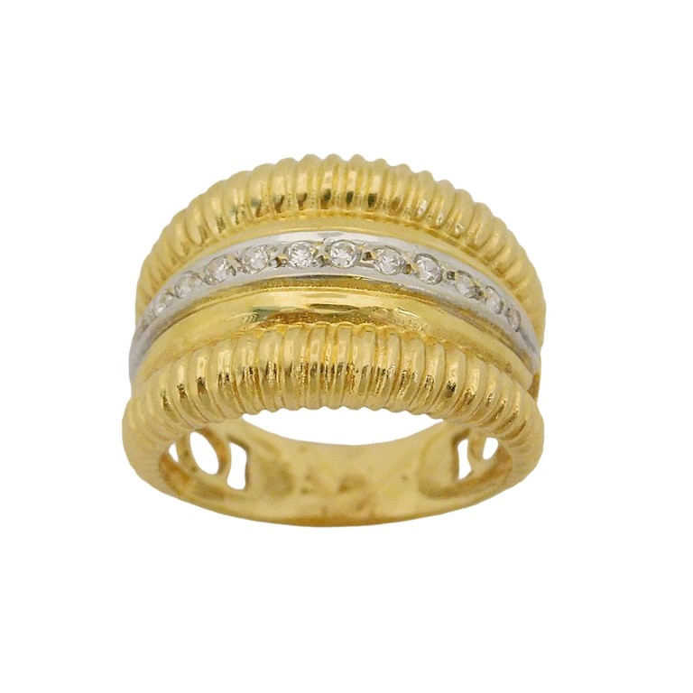 ANILLO ANCHO TALLADO CON CIRCONITAS CENTRALES TALLA 15, 6.45GR. 18KPiedras: CIRCONITAS
