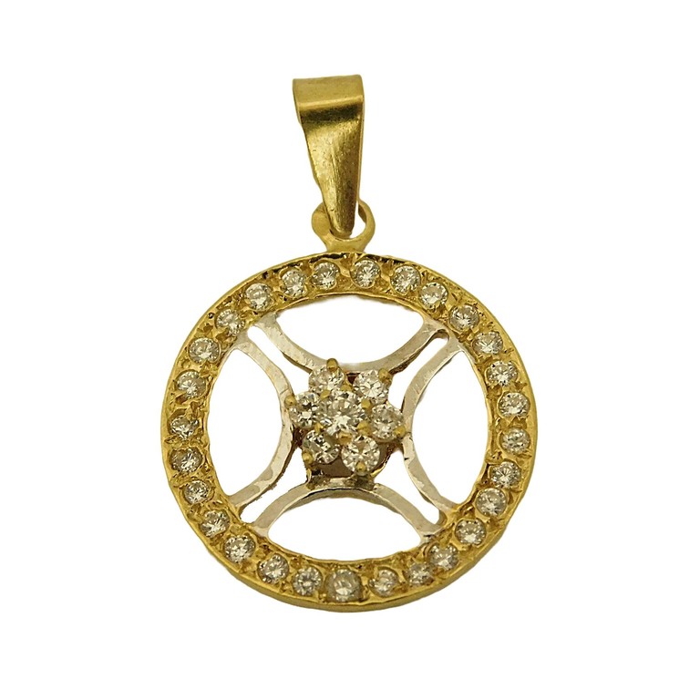 COLGANTE REDONDO EN ORO BLANCO Y AMARILLO CON CIRCONITAS 23MM 2.50GR. 18KPiedras: CIRCONITAS