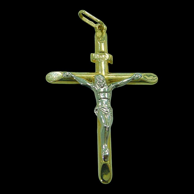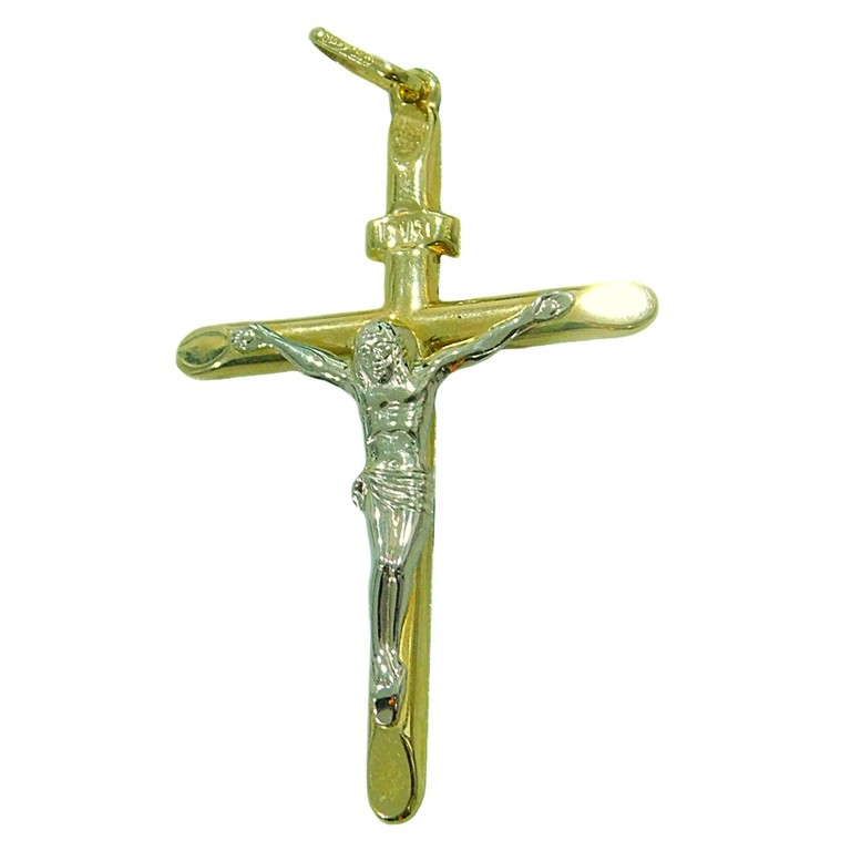 COLGANTE CRUZ BICOLOR CRISTO EN RELIEVE 60MM 4.03GR 18K