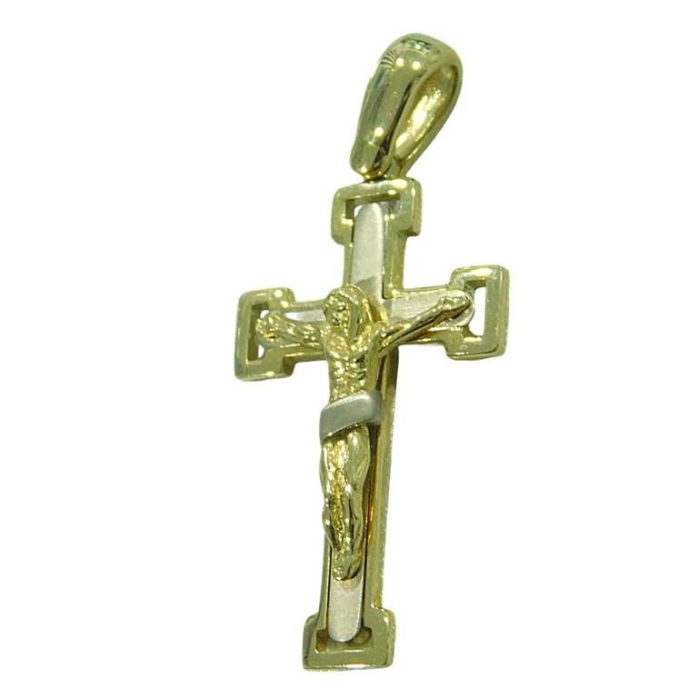COLGANTE CRUZ BICOLOR CRISTO EN RELIEVE 40MM 6.46GR 18K