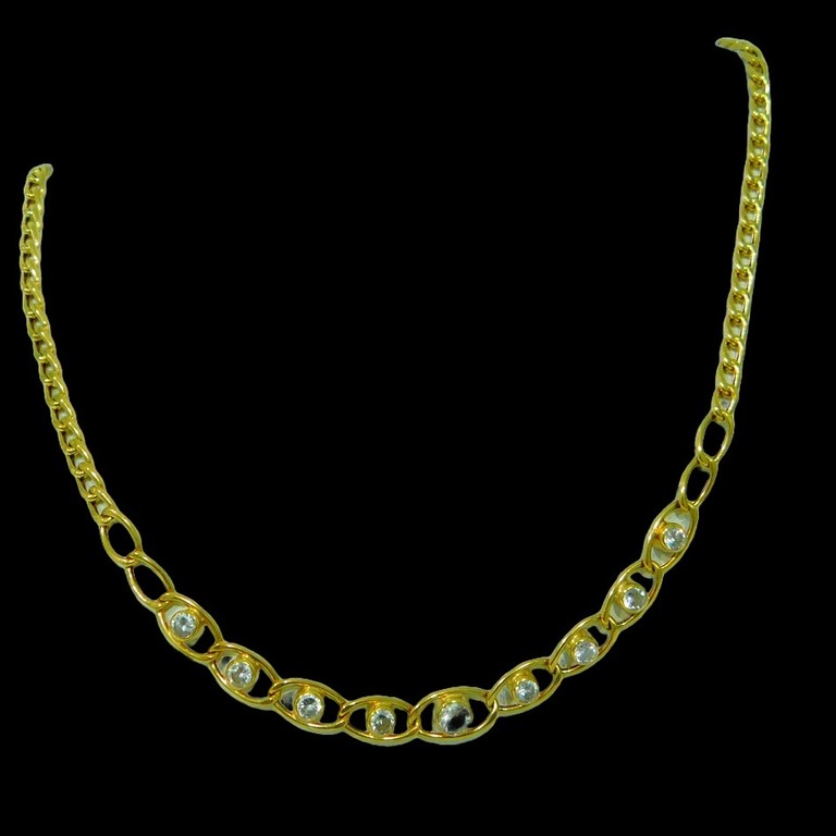 GARGANTILLA DE ESLABOLES CLASICOS CON CIRCONITAS 51CM 13.29GR 18K