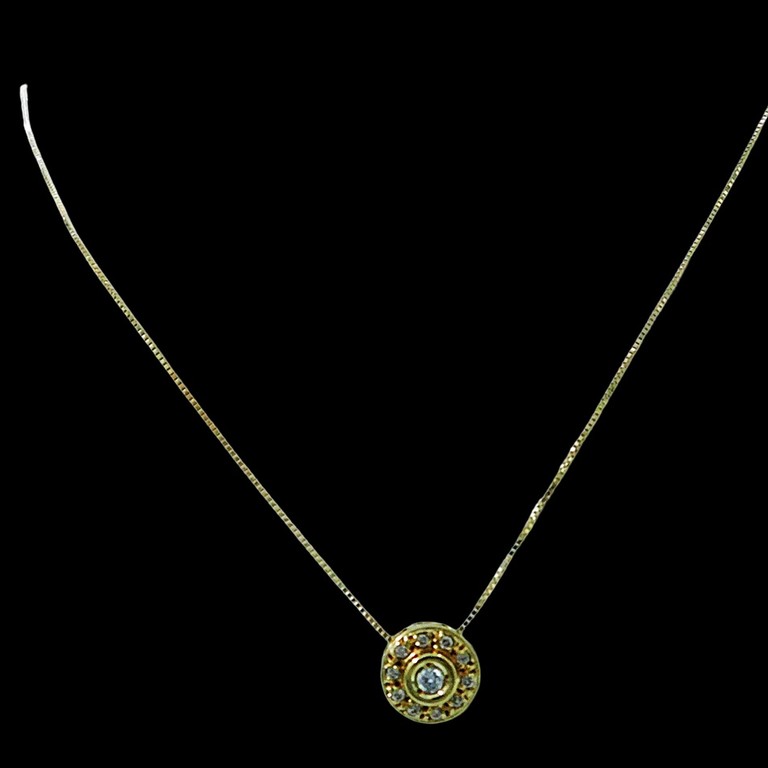 GARGANTILLA FINA VENECIANA APLIQUE CENTRAL CIRCULAR CIRCONITAS 40CM 2.26GR 18K