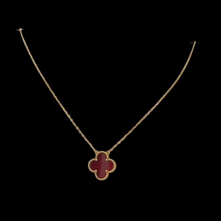 GARGANTILLA CADENA CLASICA 45CM. VAN CLEEF & ARPERLS CON FLOR CON CORNALINA 5.65GR. 18K