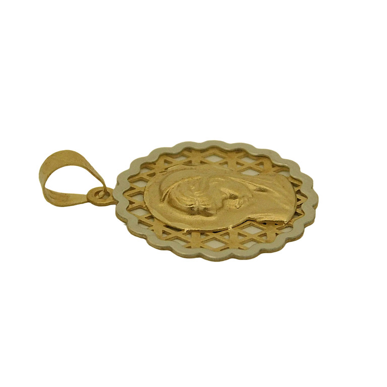 MEDALLA VIRGEN NIÑA CON MARCO EN ORO BLANCO 20MM. 1.45GR. 18K