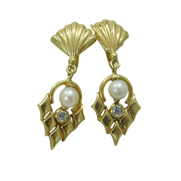 PENDIENTE ALARGADO TALLADO CON PERLA CIERRE CATALAN 2.53GR. 18K