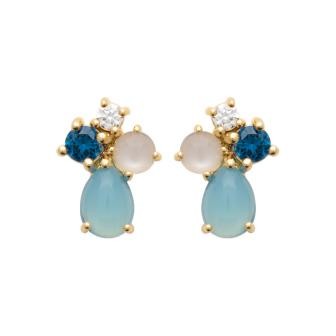PENDIENTE PLAQUE ORO 750. 3 MICRAS. PIEDRA COLOR (DABRA)