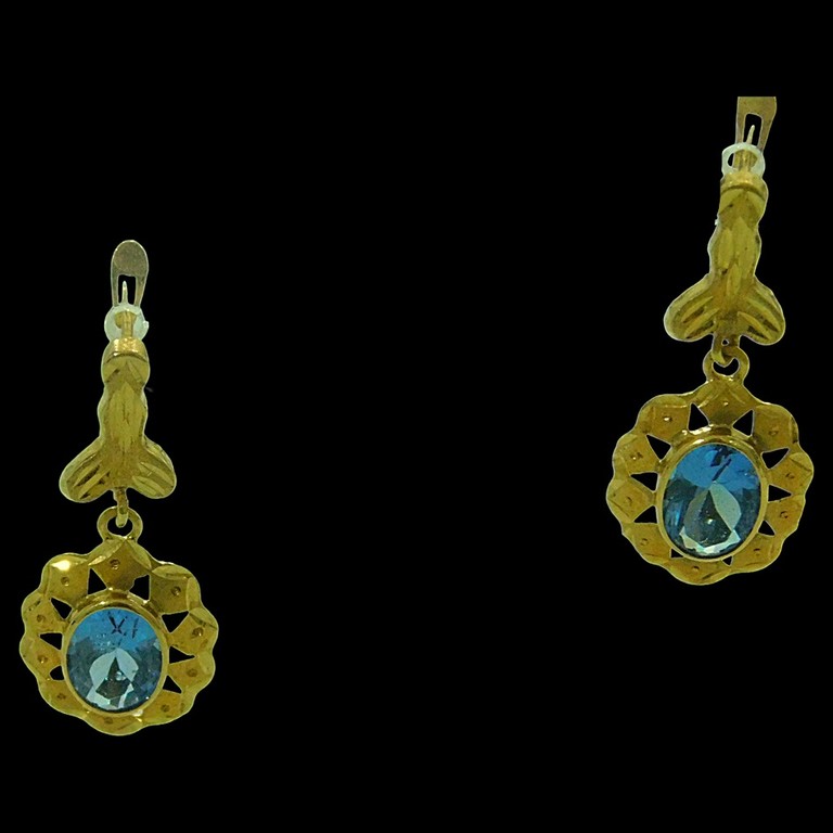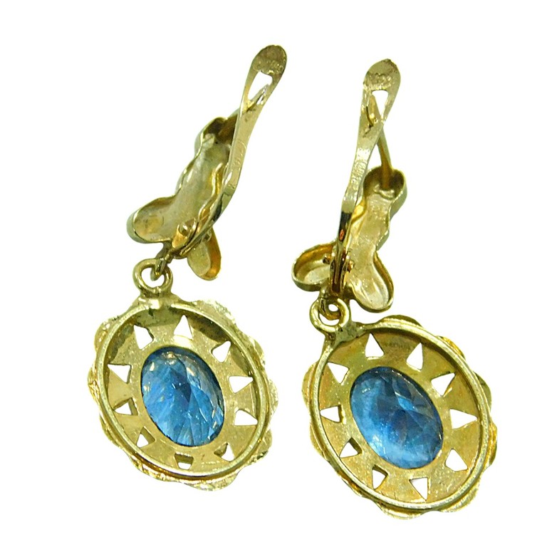 PENDIENTES CALADOS CIERRE CATALAN PIEDRAS AZULES 2.28 GR 18K