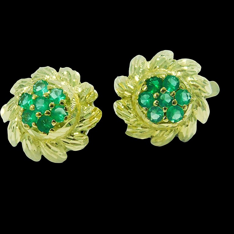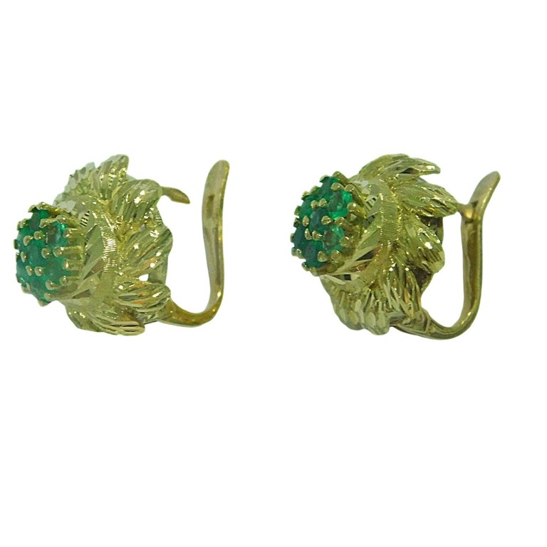 PENDIENTES CIERRE CATALAN FORMA FLORAL PIEDRAS VERDES CENTRALES 5.73GR 18K