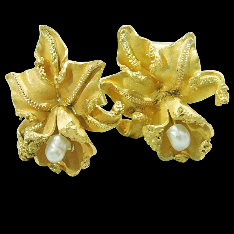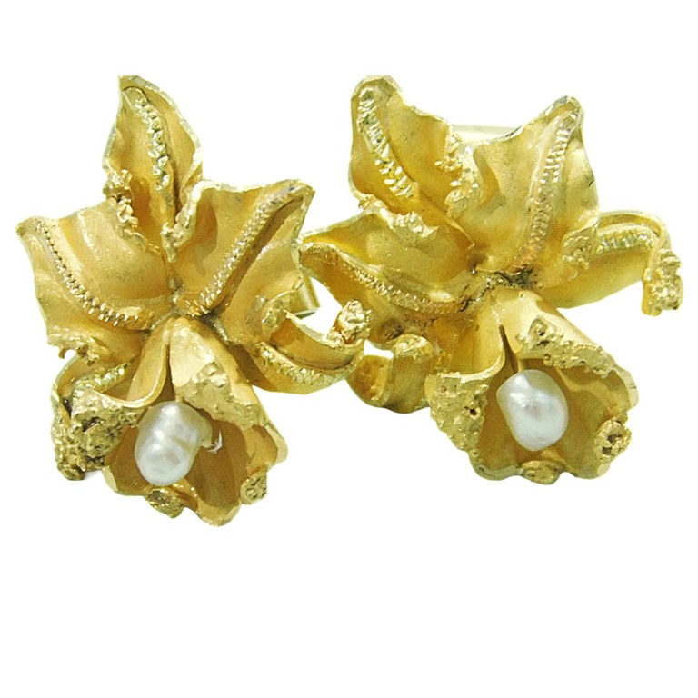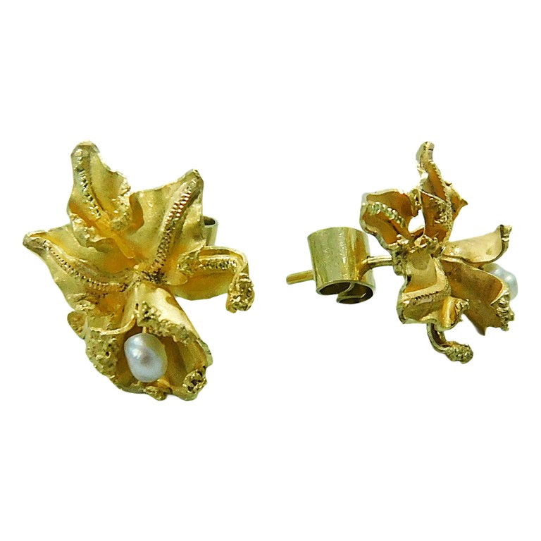 PENDIENTES FLOR MADRE PERLA CENTRAL CIERRE PRESION 5.50GR 18K