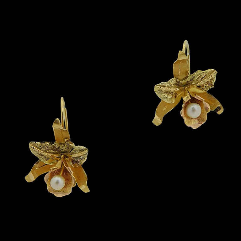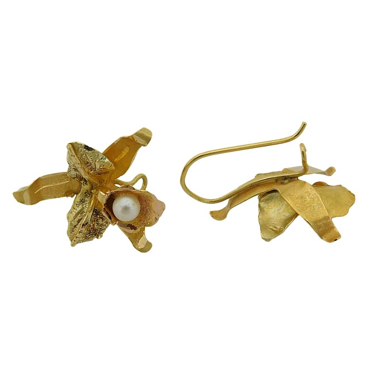 PENDIENTES FLOR CON PERLA BLANCA CIERRE MONAQUELA 3.50GR. 18K