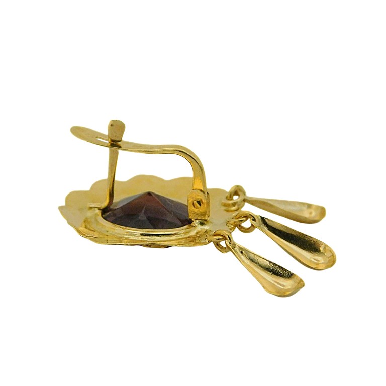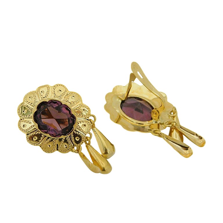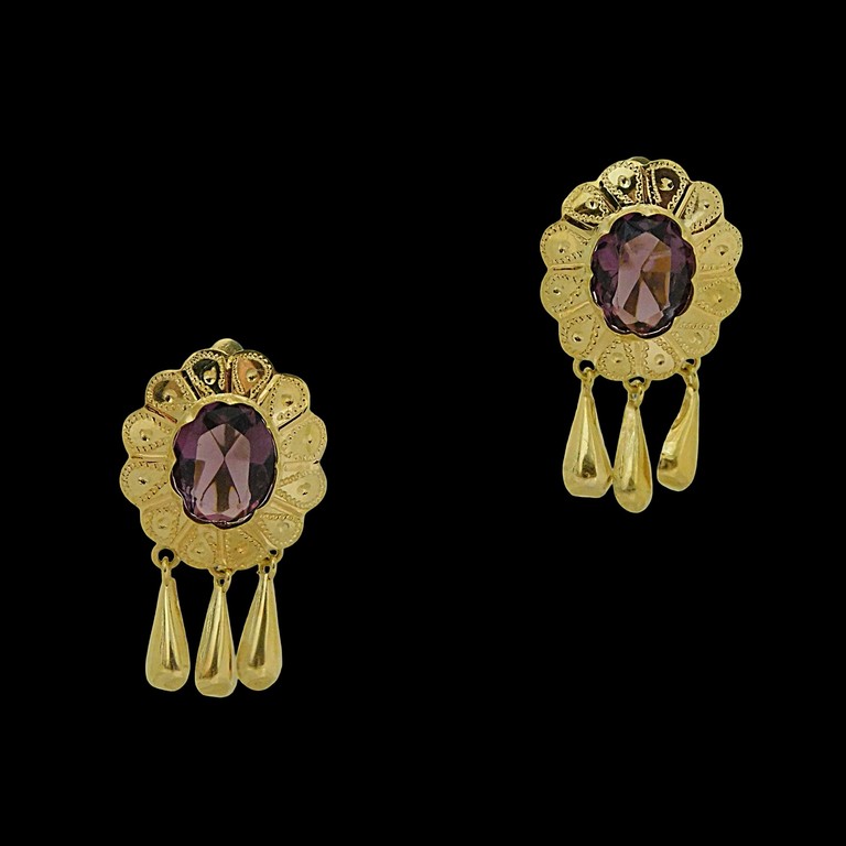 PENDIENTES TALLADOS CON ESPINELA MORADA CIERRE CATALAN 3.25GR. 18K