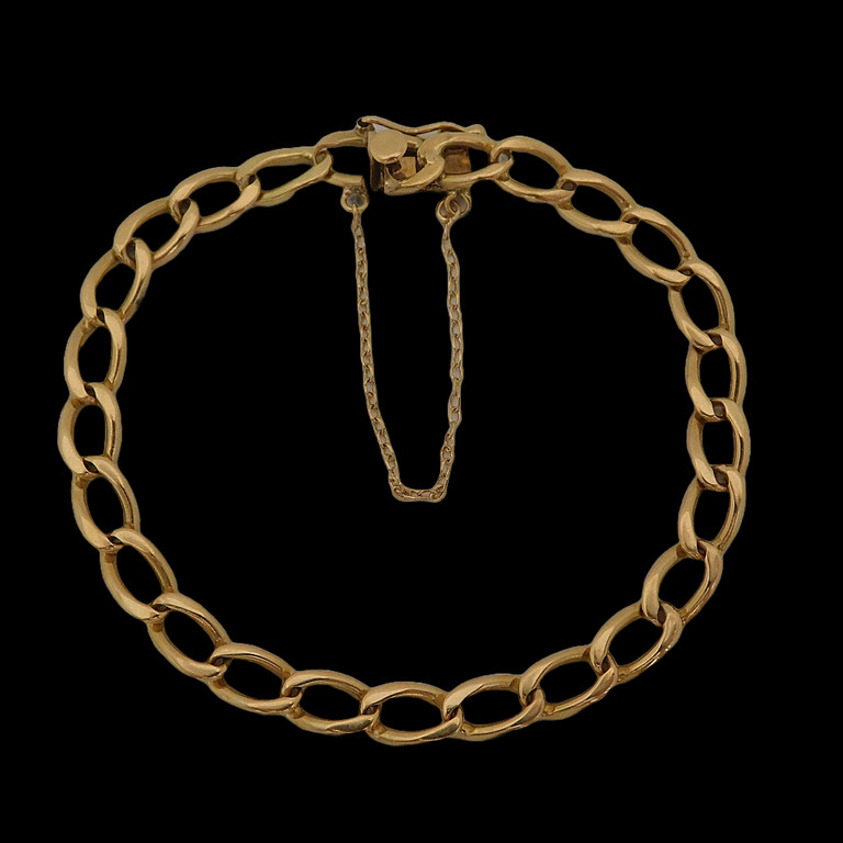 PULSERA CADENA INGLES CIERRE CAJA CON CADENITA DE SEGURIDAD 16.05GR. 18K