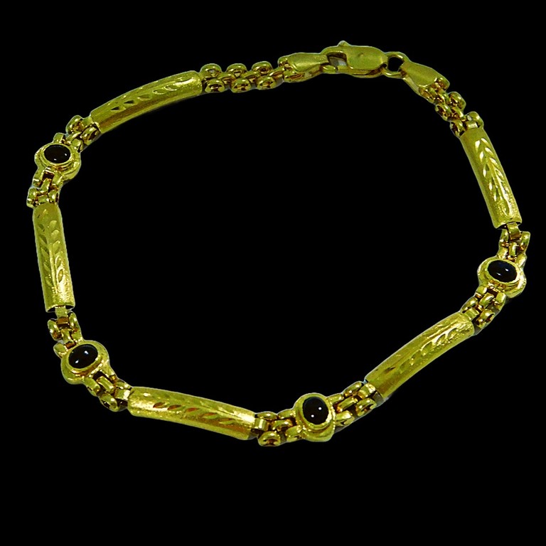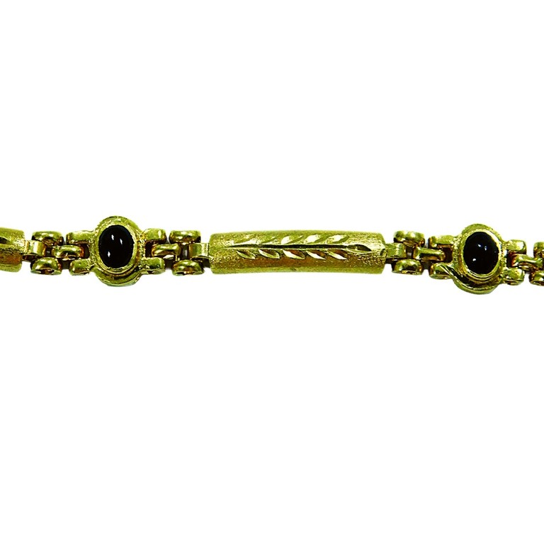 PULSERA ESLABONES APLANADOS DISEÑO FLORAL CON PIEDRAS AZULES INTERCALADAS 19CM 8.02GR 18KPiedras: piedras azul