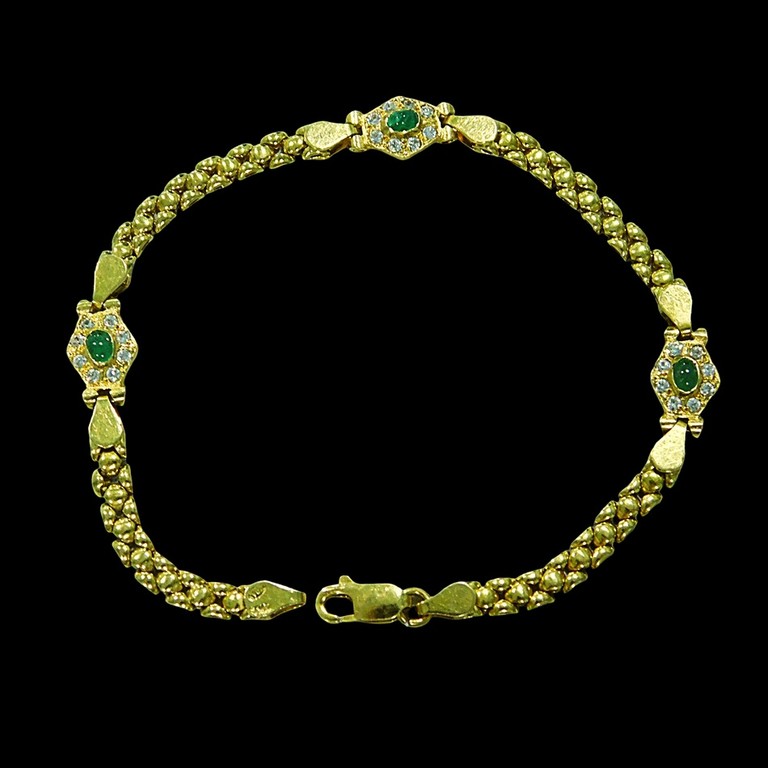 PULSERA PANTER APLIQUES CIRCONITAS VERDES Y BLANCAS 19CM 8.25GR 18K