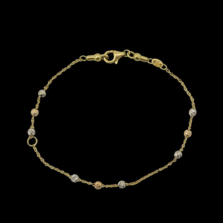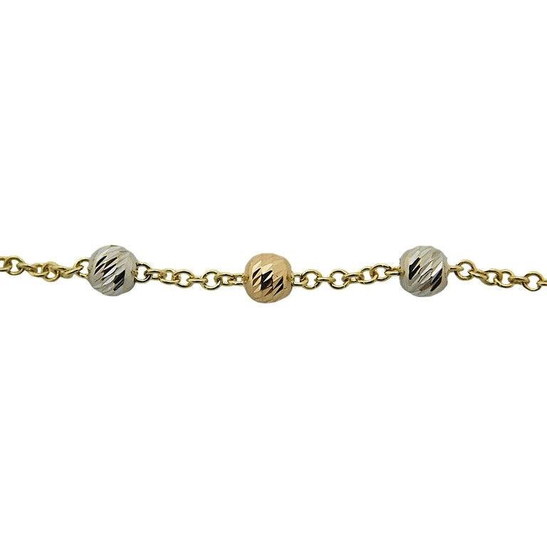 PULSERA CADENA CLASICA EN ORO AMARILLO CON BOLAS EN ORO BLANCO Y ORO ROSA 2.75GR. 18K